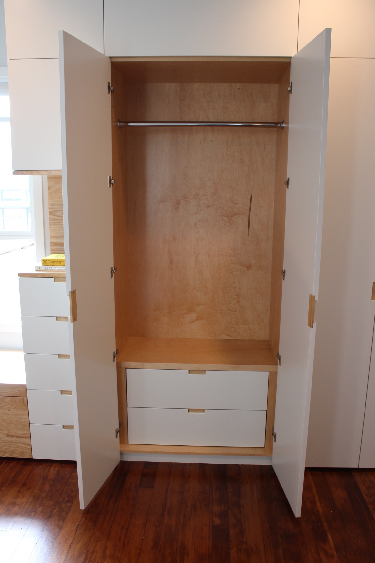 Henry took the same care in the interior closet drawers as the exterior and every aspect of this design fit perfectly into the homeowners space.